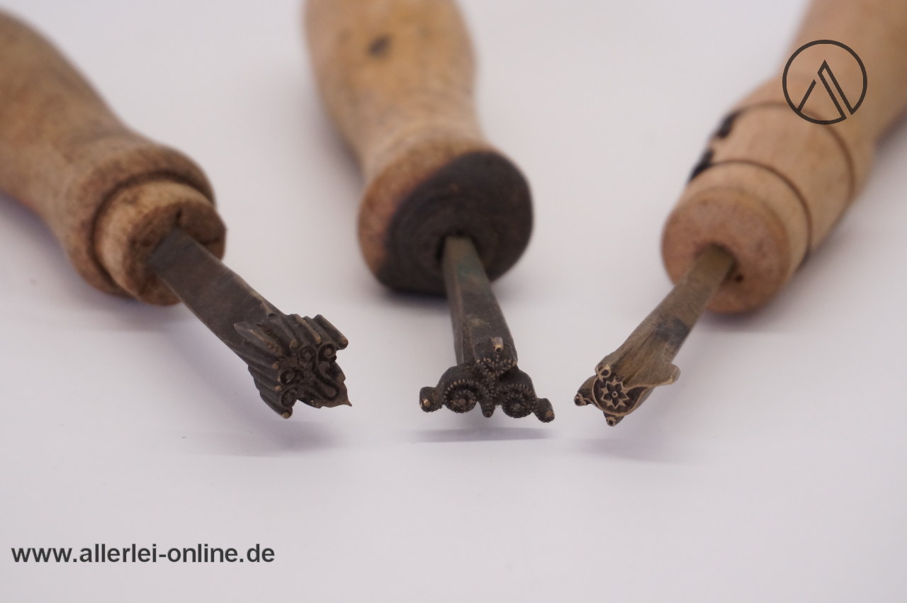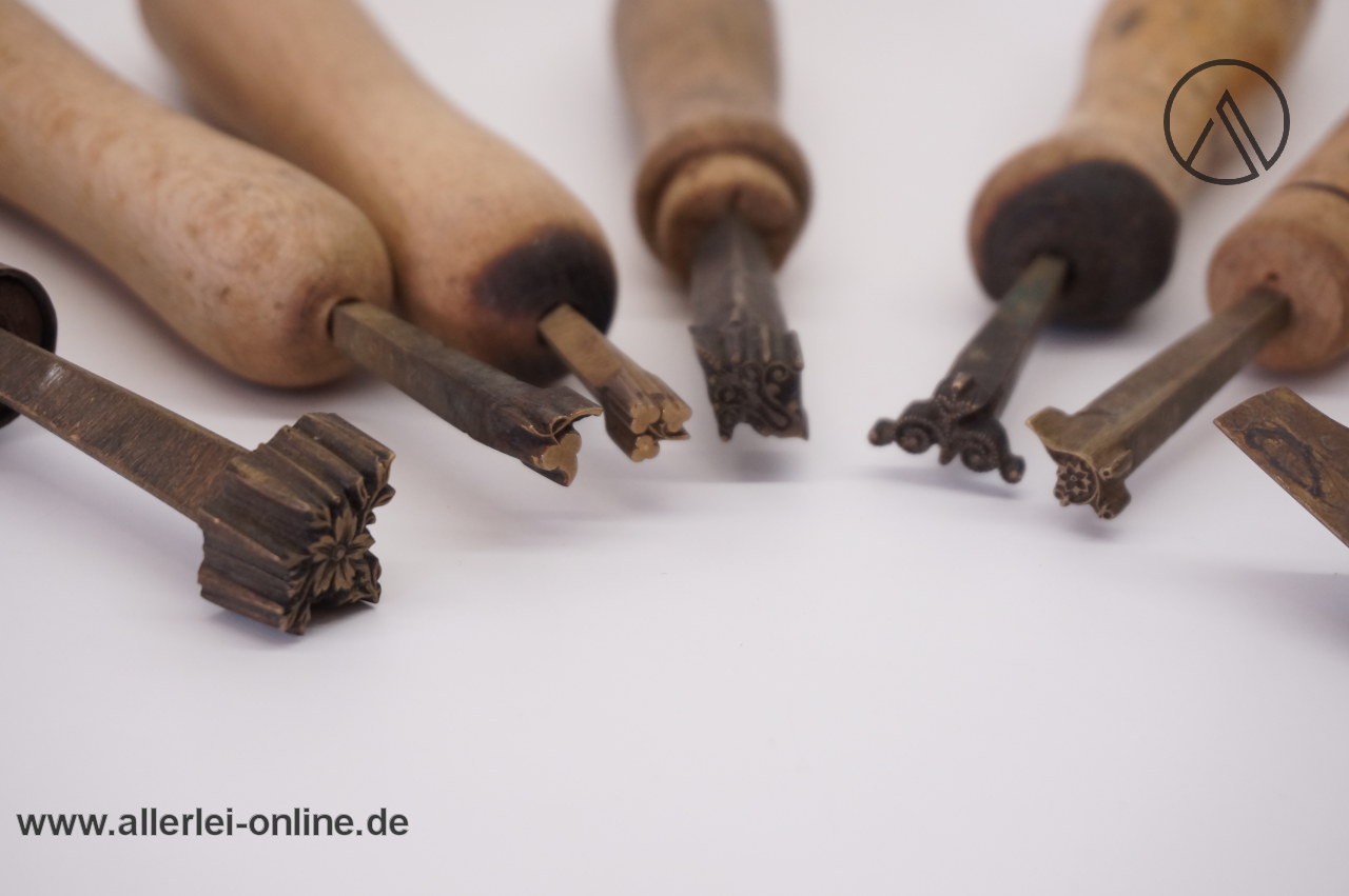 Artikel: Buchbinder Werkzeug Filetierwerkzeug 9Stk. / Zierornament Stempel | Veredelung Vergoldungen der Bucheinbände