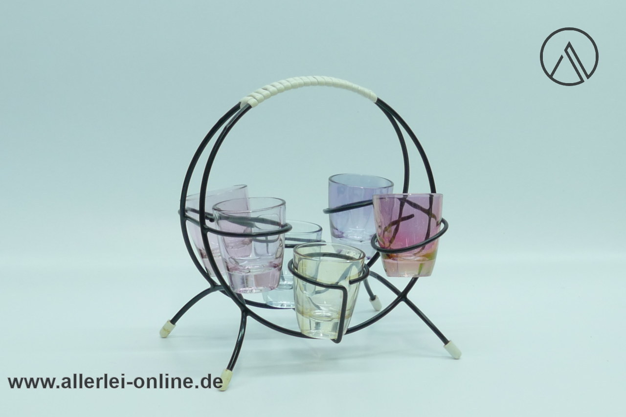 Artikel: Bunte Schnapsgläser mit Halter | Schnapsglas-Set | Vintage Rockabilly 50-60er Jahre
