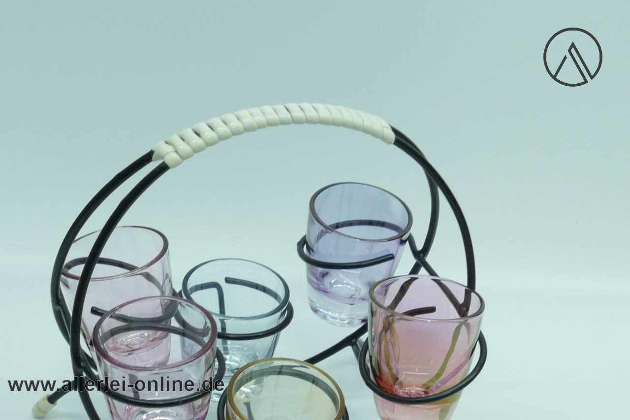 Lieferumfang: 6 bunte Schnapsgläser mit Glashalter | Vintage 50-60er Jahre Set , wie abgebildet