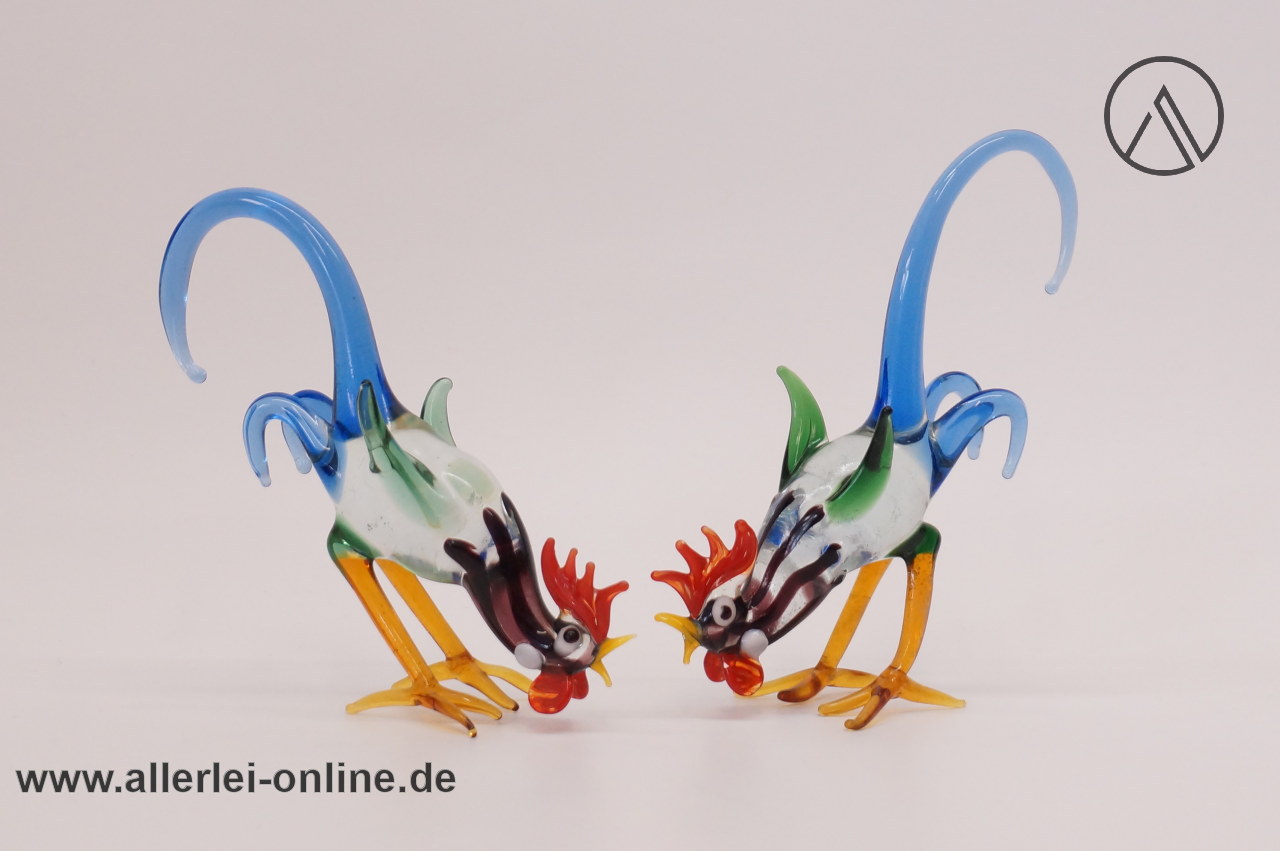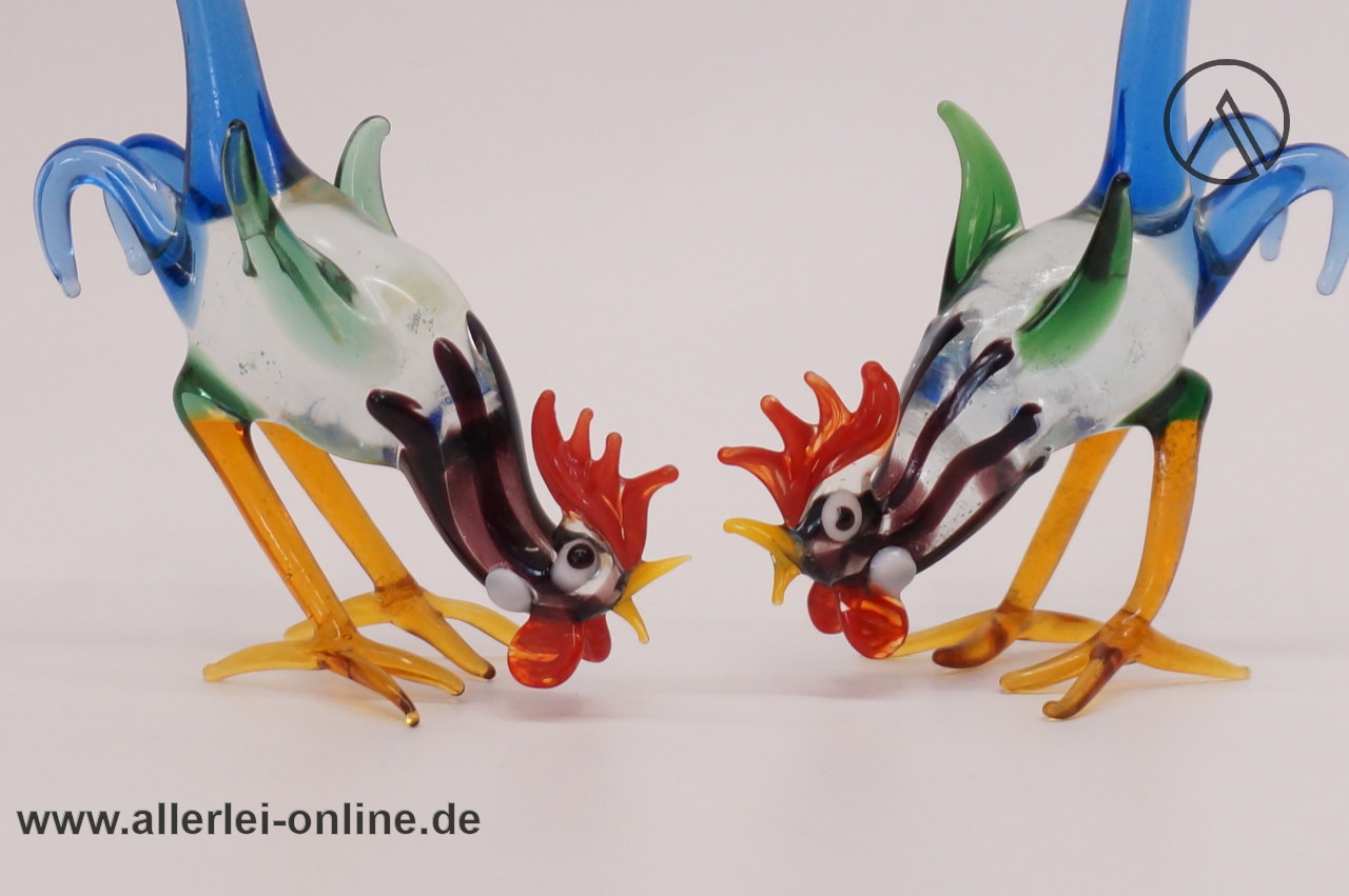 Artikel: Buntes Glastier | Kampfhähne | Vintage Miniatur Glasfigur | Glaskunst Skulptur