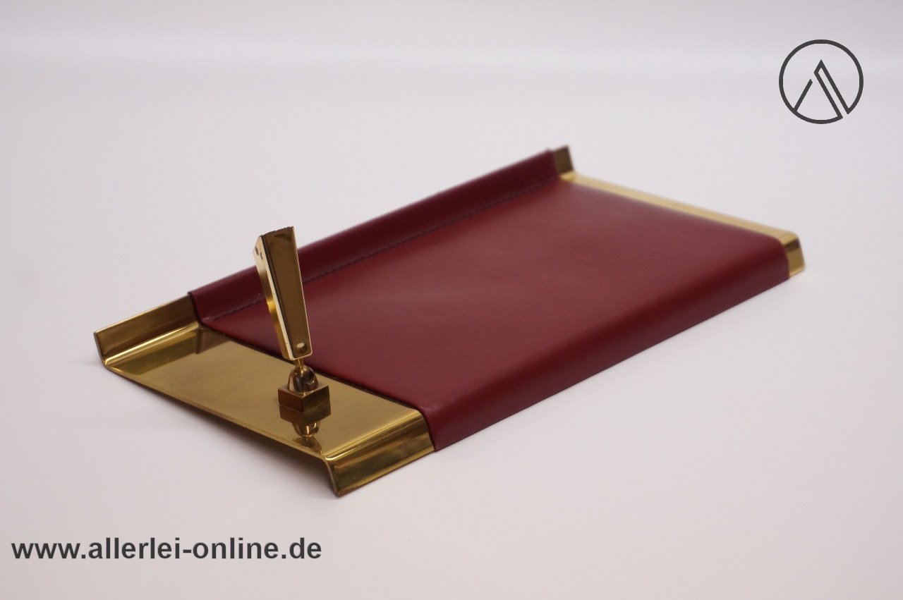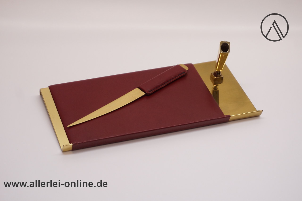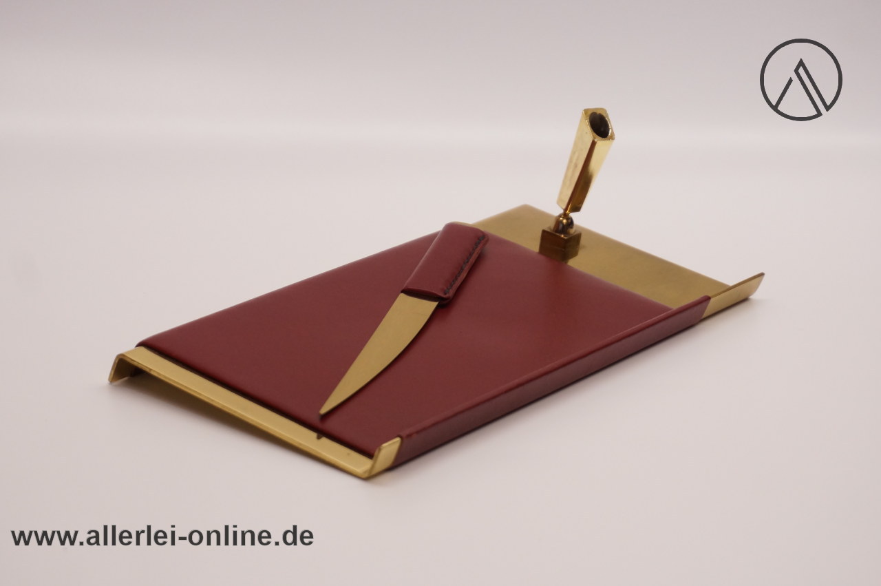 Vintage Schreibtischablage / Stiftablage mit Brieföffner | Vintage Messing – Leder Schreibtisch Garnitur