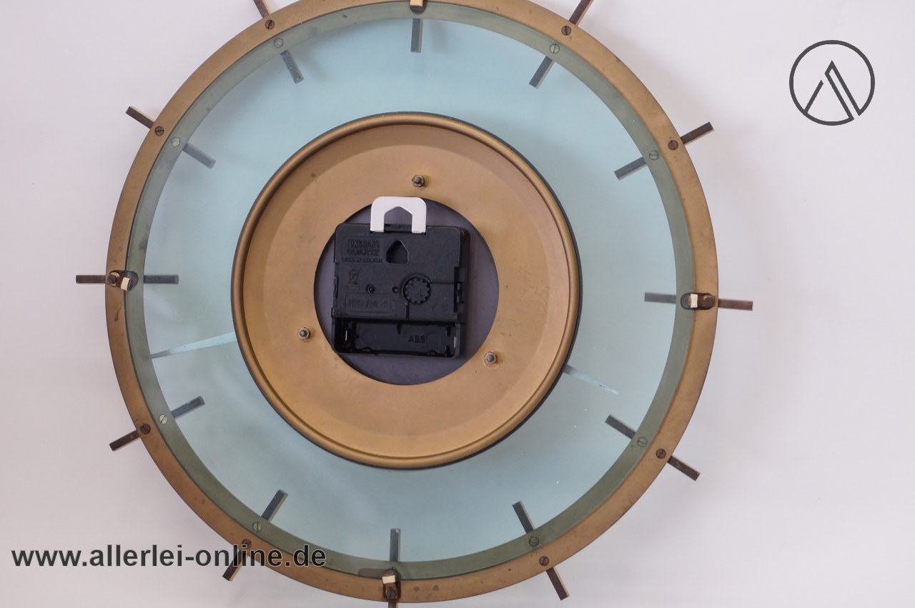 Herrliche Glas Messing Uhr | Wanduhr | 50-60er Jahre Klassiker | Junghans - Quarzwerk hinten