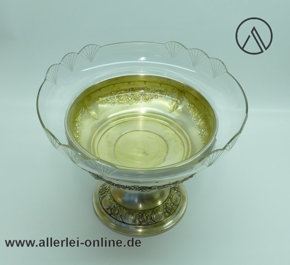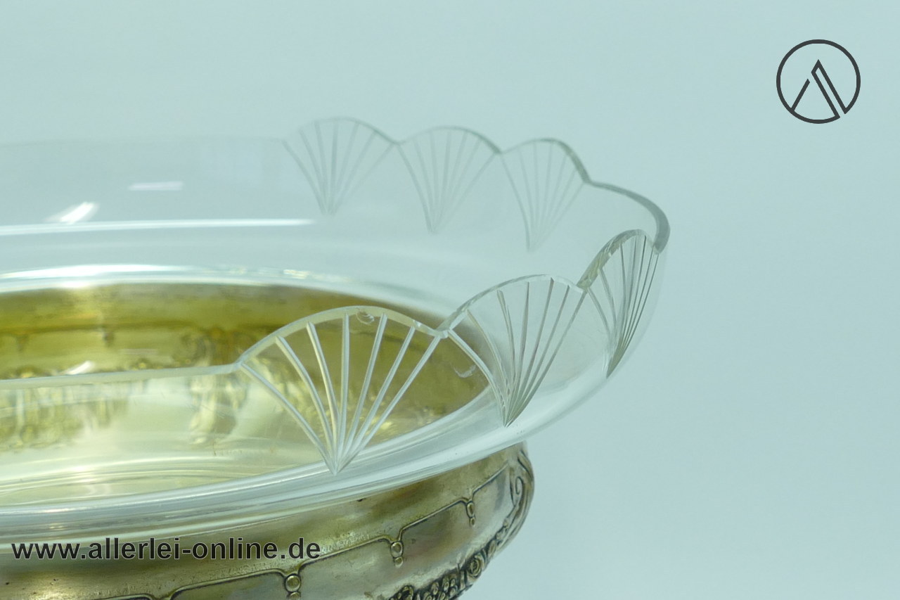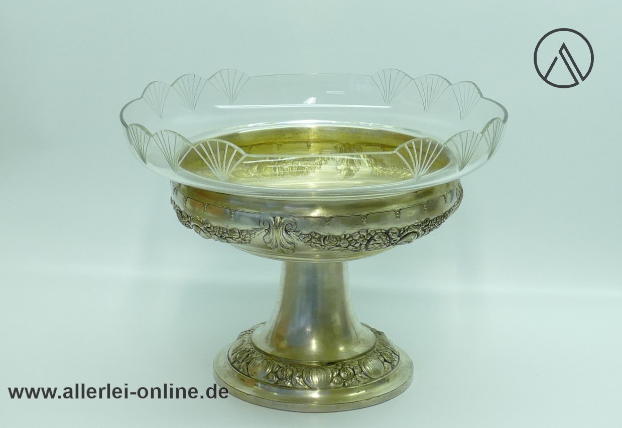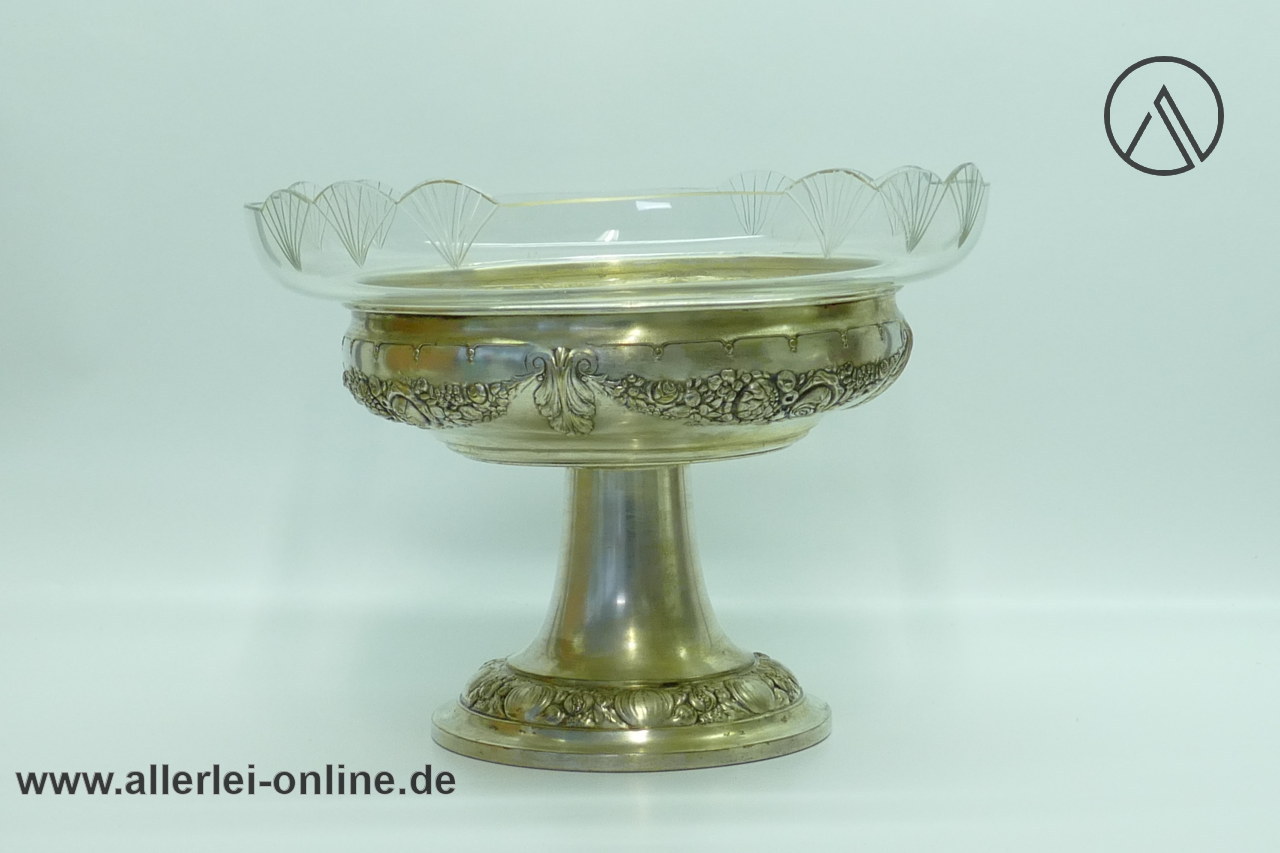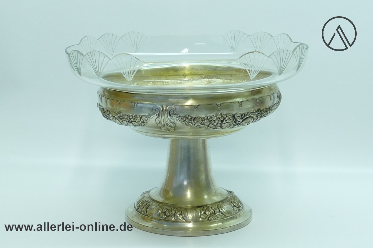 Artikel: Jugendstil-Art Deco Tafelaufsatz Schale | Obstschale ,versilbert mit Glaseinsatz | 29 cm