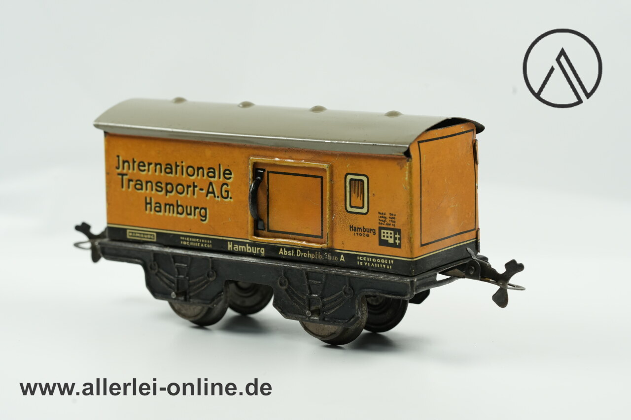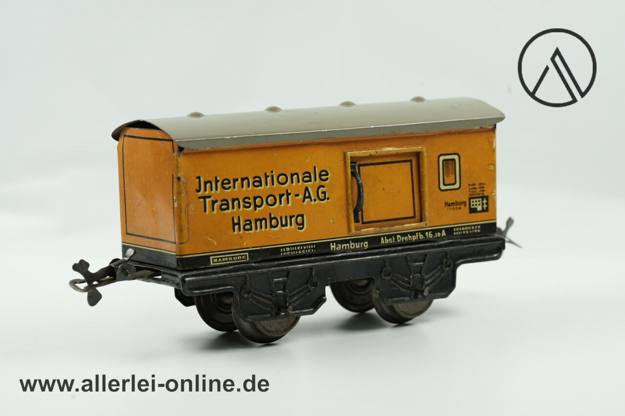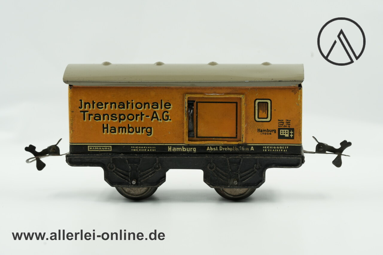 Lieferumfang: 1 Stück Karl Bub Spur 0 Güterwagen | Internationale Transport A.G. Hamburg | Made in Bavaria Blechspielzeug Blecheisenbahn ,wie abgebildet