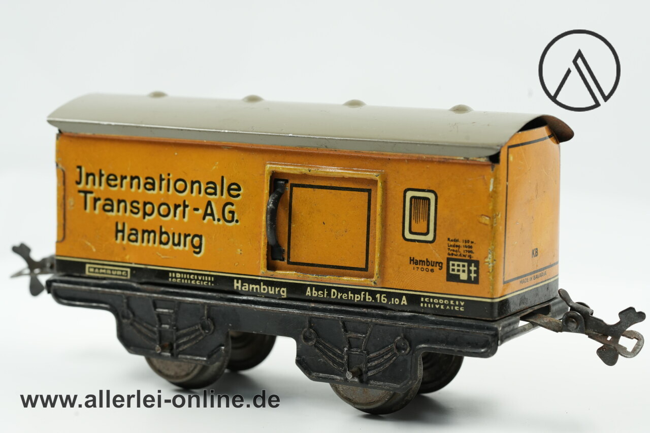 Artikel: Karl Bub Spur 0 Güterwagen | Internationale Transport A.G. Hamburg | Made in Bavaria Blechspielzeug Blecheisenbahn