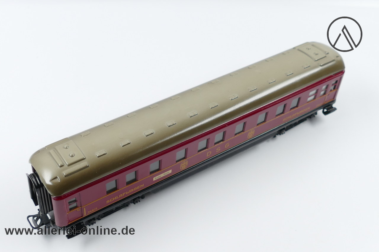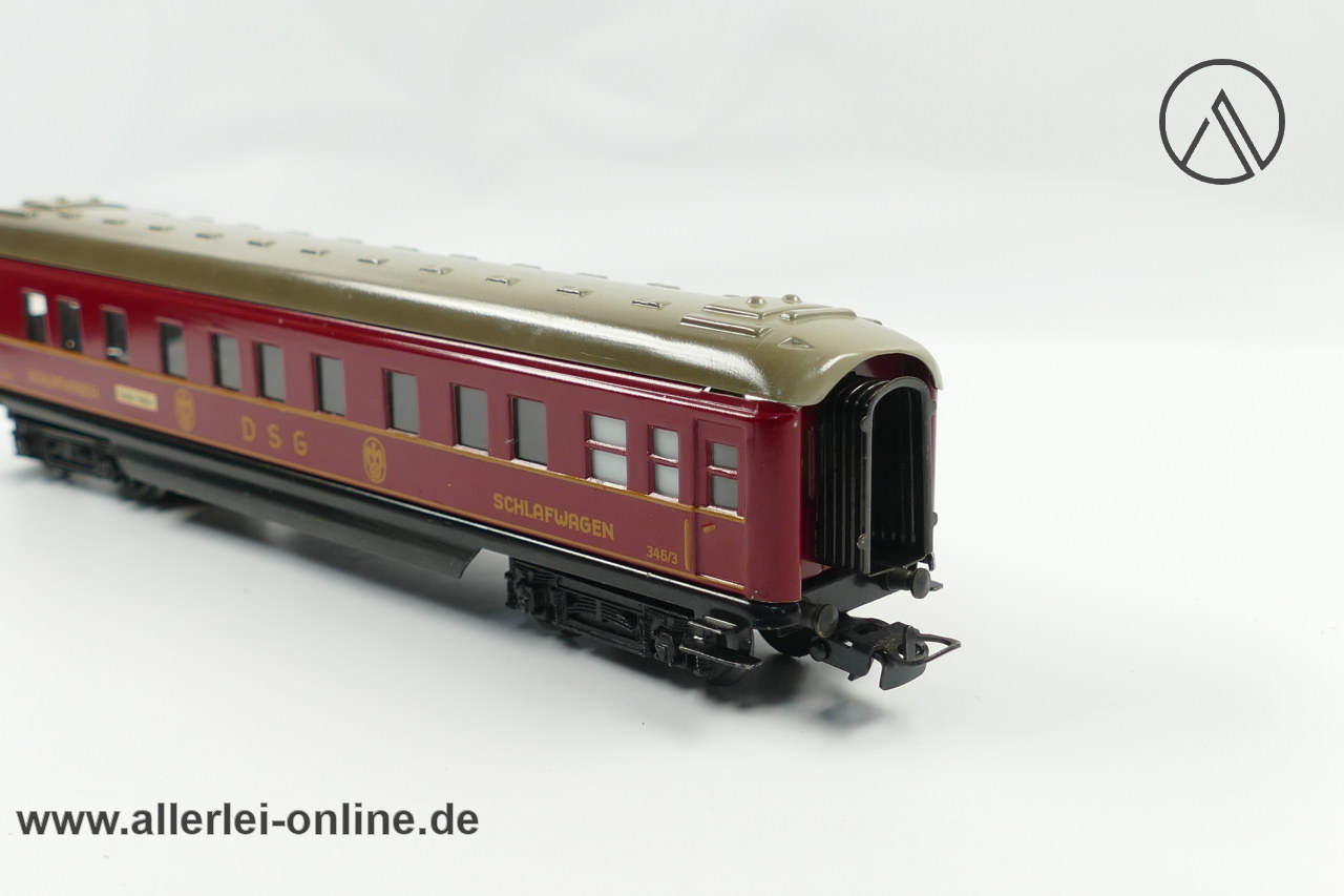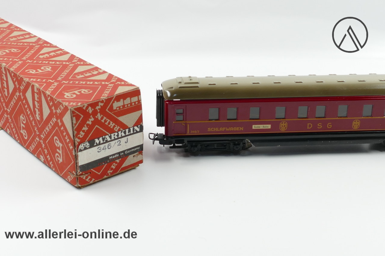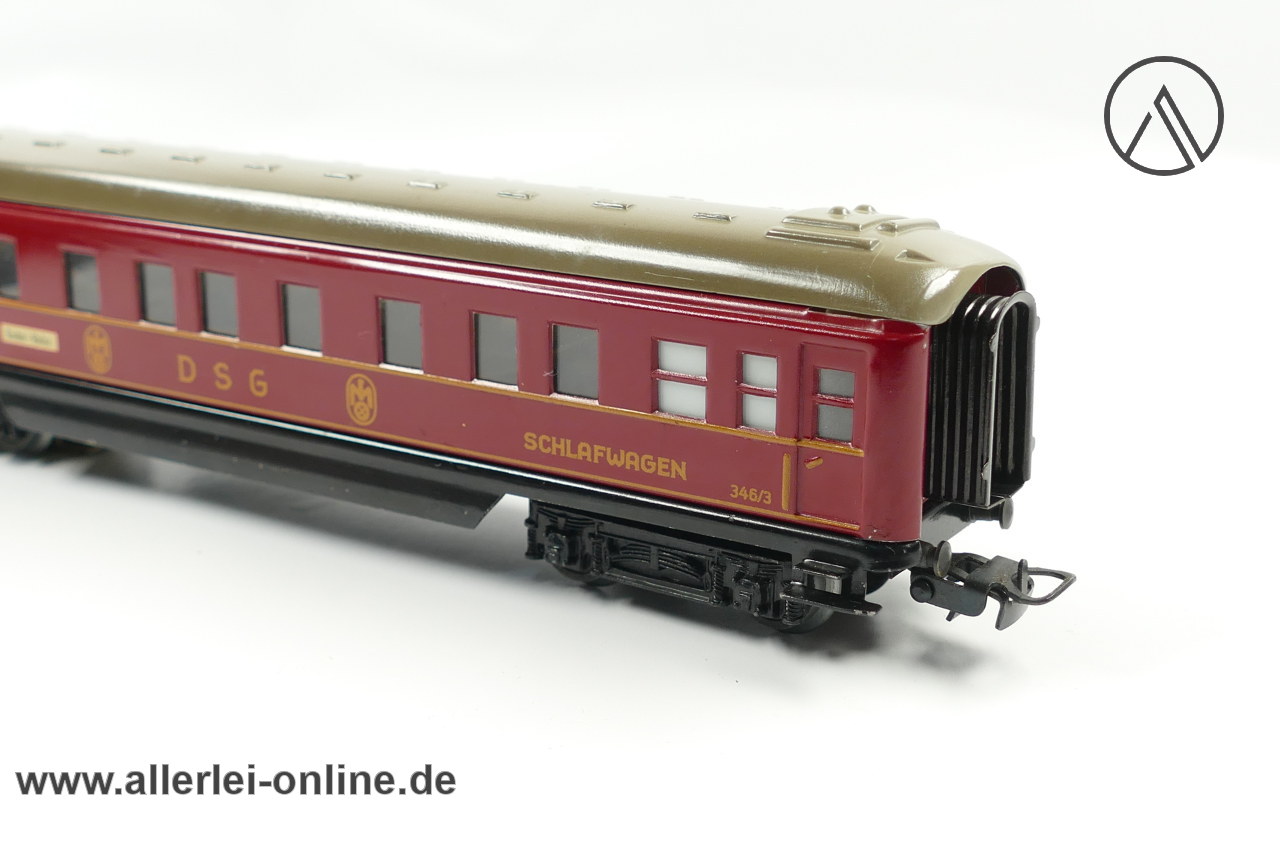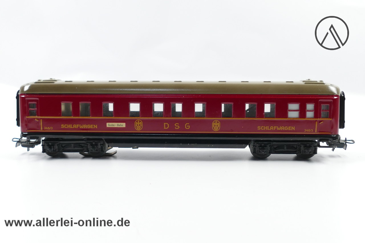 Lieferumfang: 1 Stück Märklin H0 | Märklin 346/3 DSG Schlafwagen | Blech-Schürzenwagen mit Märklin Originalkarton 346/2 J ,wie abgebildet