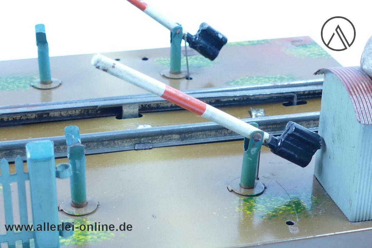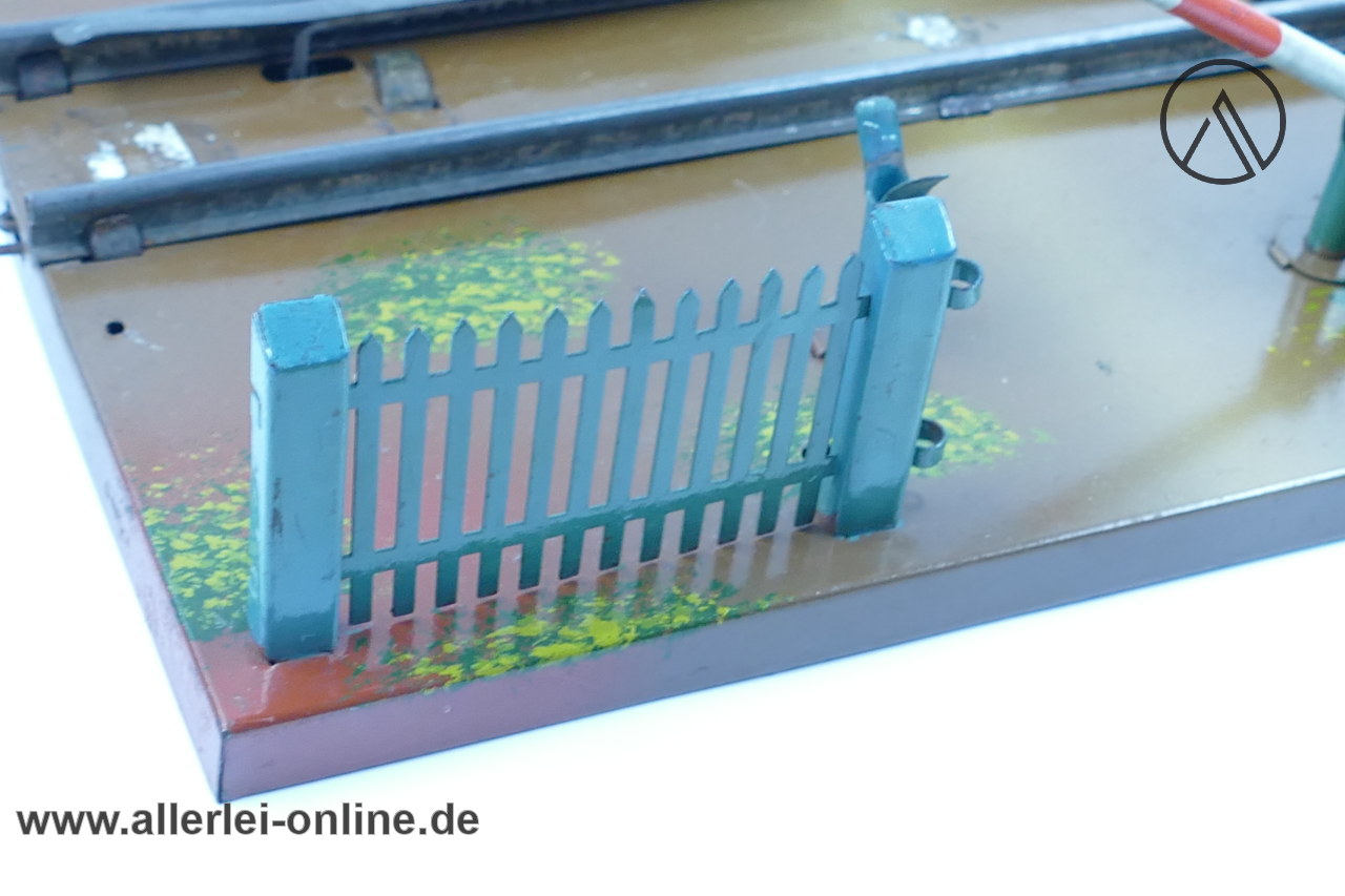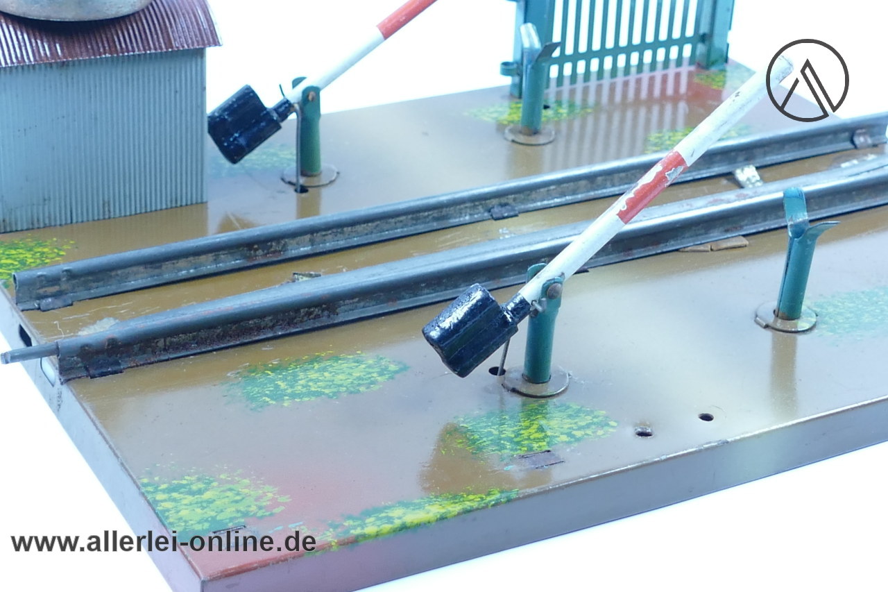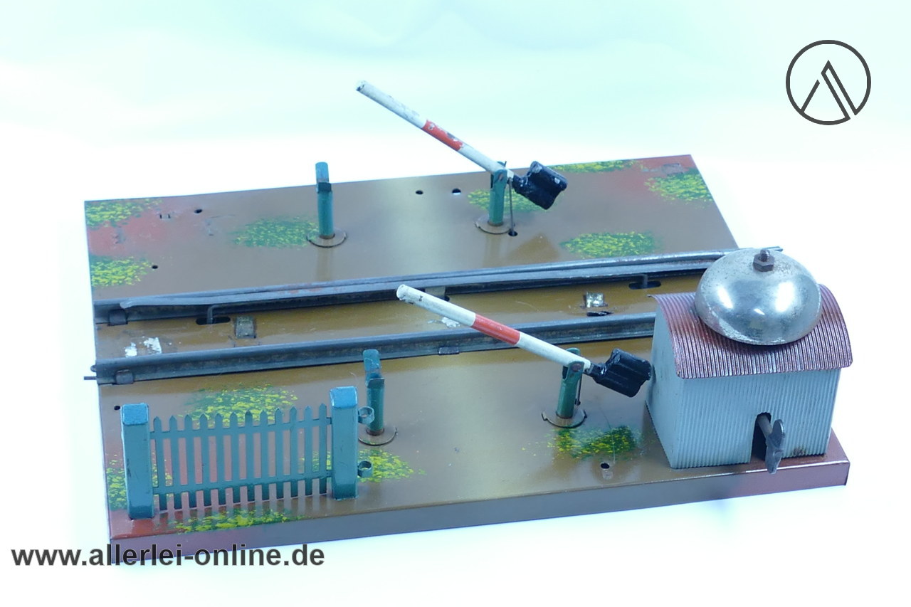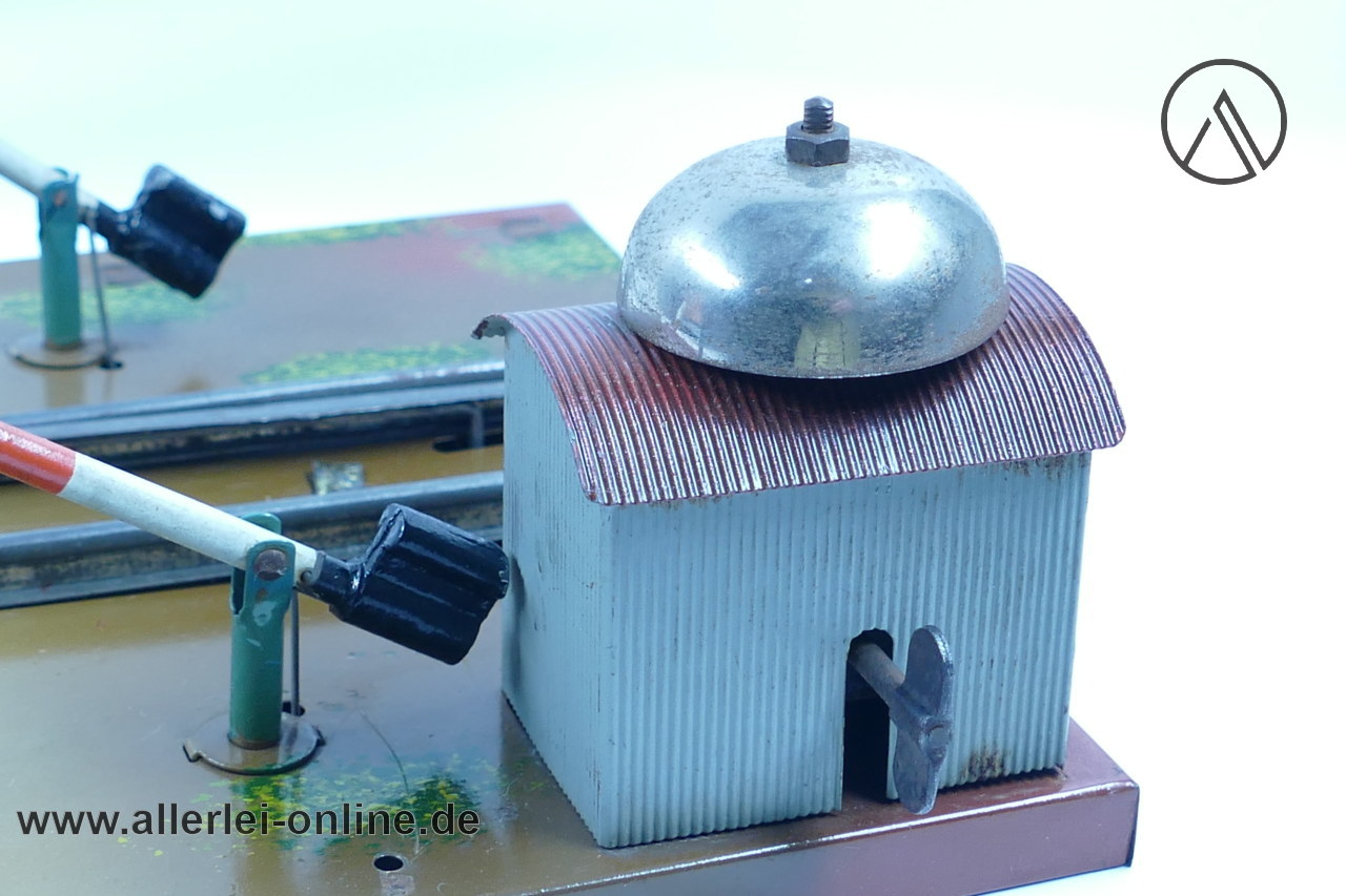 Artikel: Märklin Spur 0 | Bahnübergang mit Uhrwerk Glocke | Läutewerk | Vorkrieg Blech Gebäude / Blechspielzeug