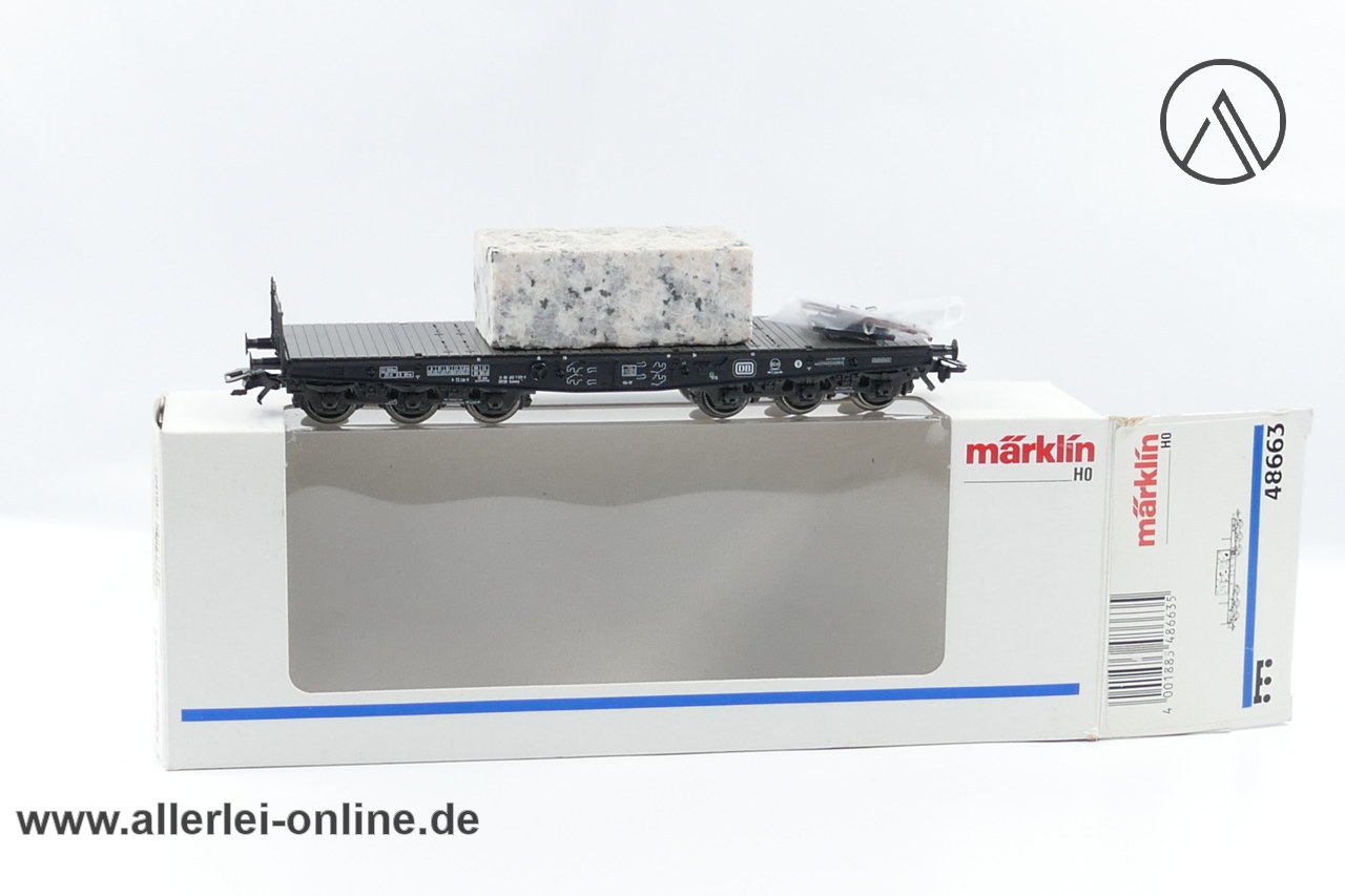 Artikel: Märklin Spur H0 | 48663 Schwerlast-Flachwagen Sammp 705 mit Granit-Block | 6-Achsiger Schwerlastwagen mit OVP