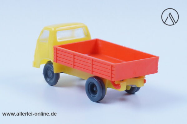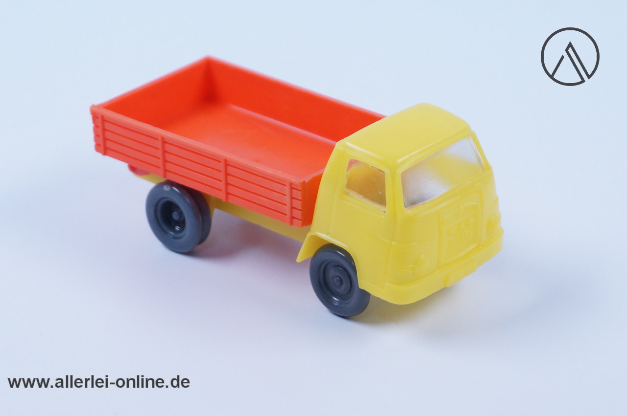 Lieferumfang: 1 Stück MAN 415 Diesel Pritschen LKW | Arthur Hammer Groschenauto – Plastik Rollachser | Gelb-Orange , wie abgebildet