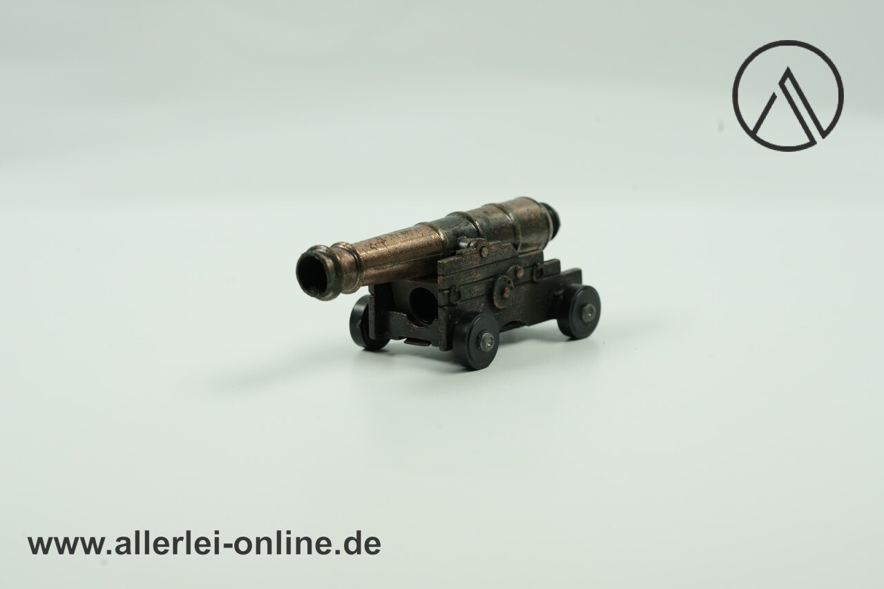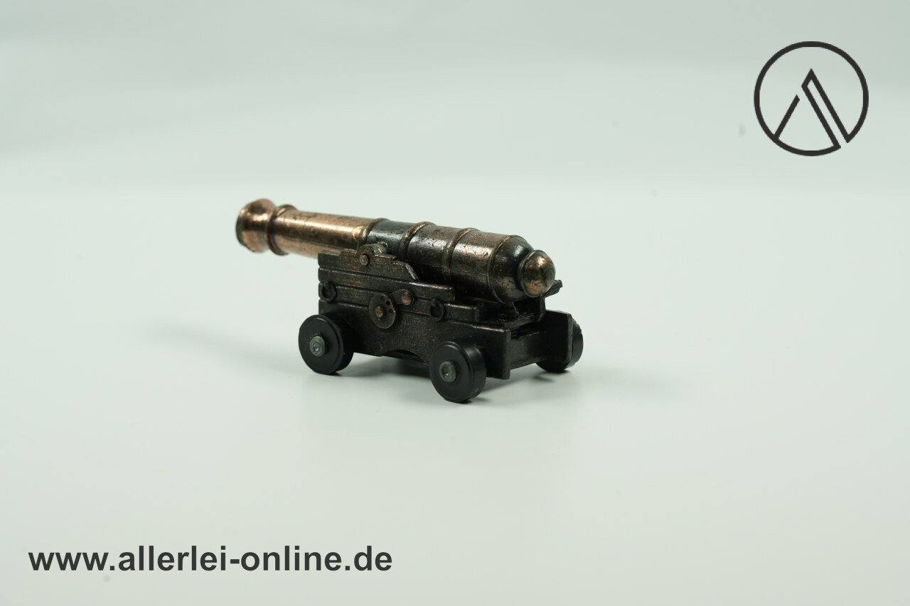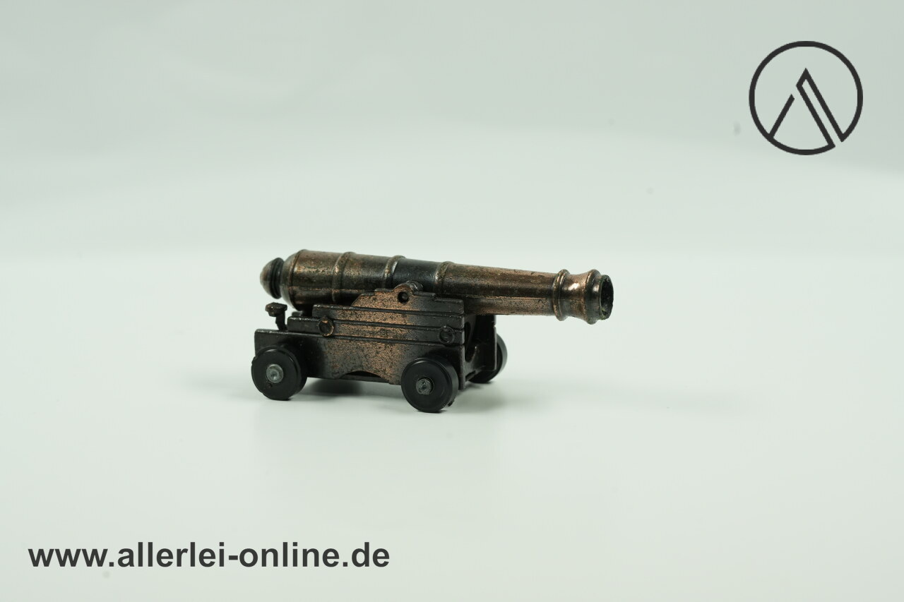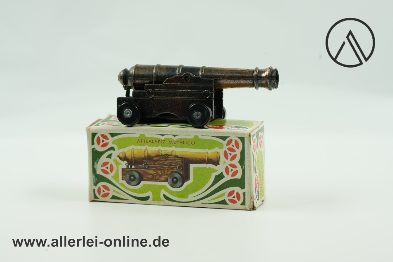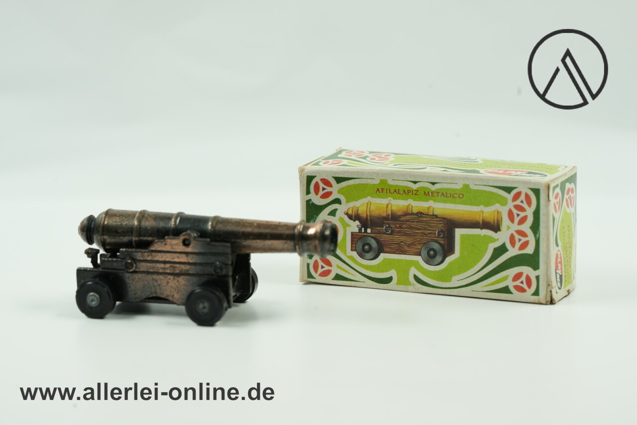 Lieferumfang: 1 Stück Miniatur Schiffskanone Bleistift-Spitzer | Metall Modell Geschütz | Vintage PlayMe Bleistiftanspitzer mit OVP , wie abgebildet