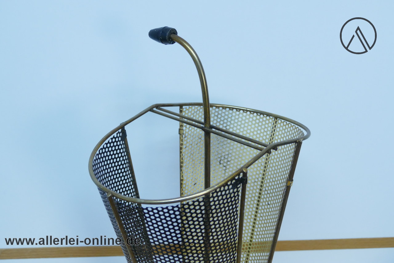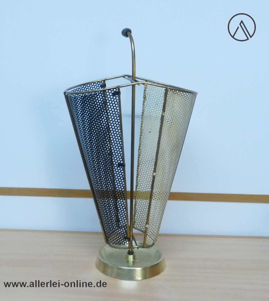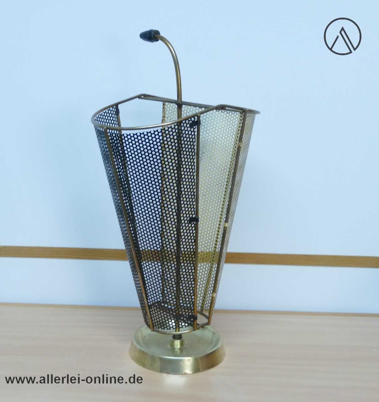Material: Schirmständer aus messingfarbigem Metall und Lochblech mit Messing Abtropfschale