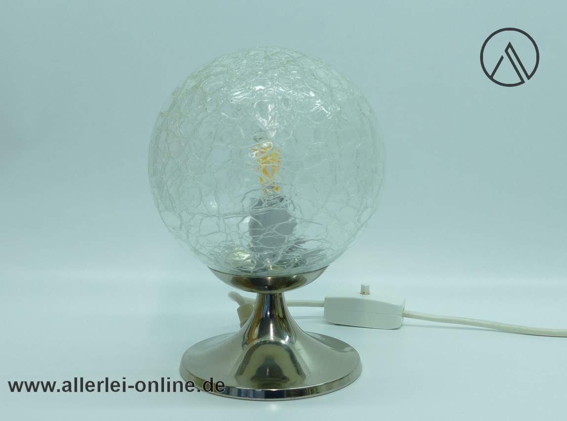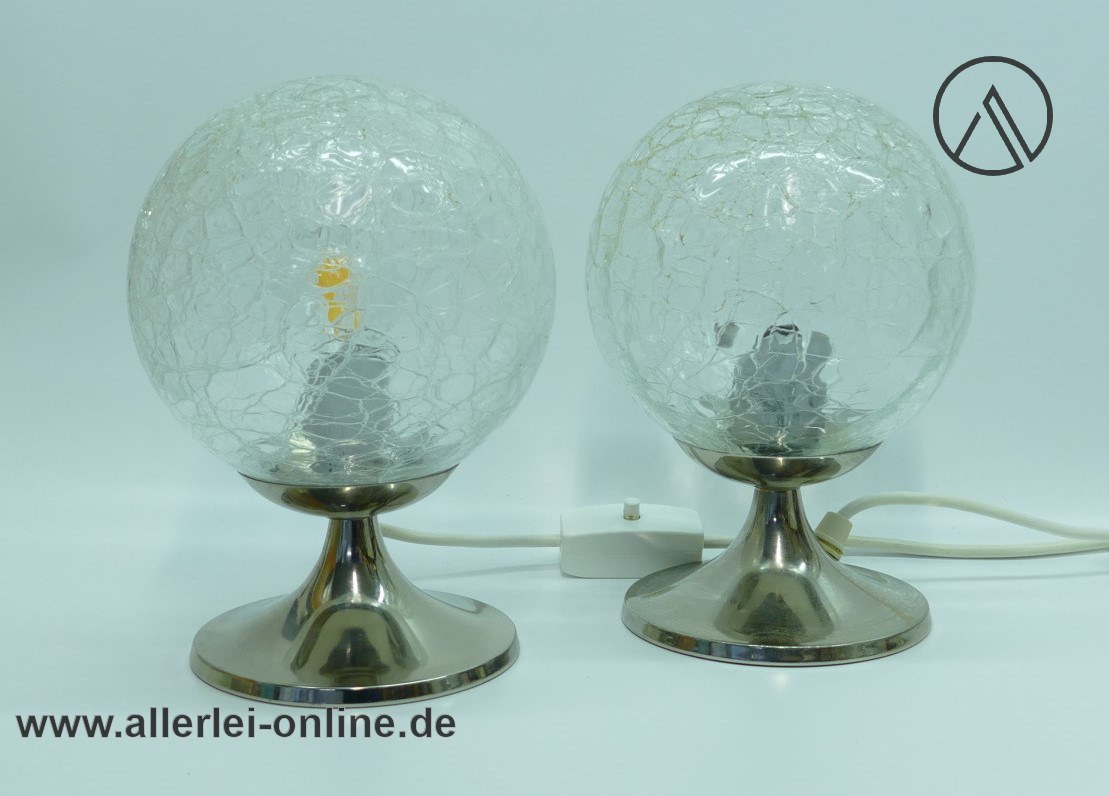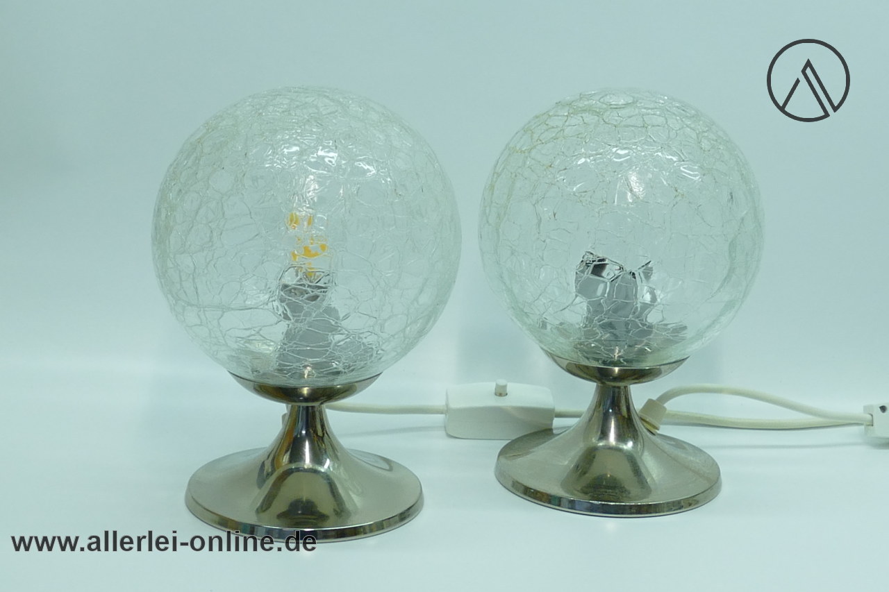 Lieferumfang: 2 Stück Space Age Kugellampen | Eisglas Bubble Glas / Tulip Chrom Tischleuchten Paar | Vintage 70er Jahre ,wie abgebildet
