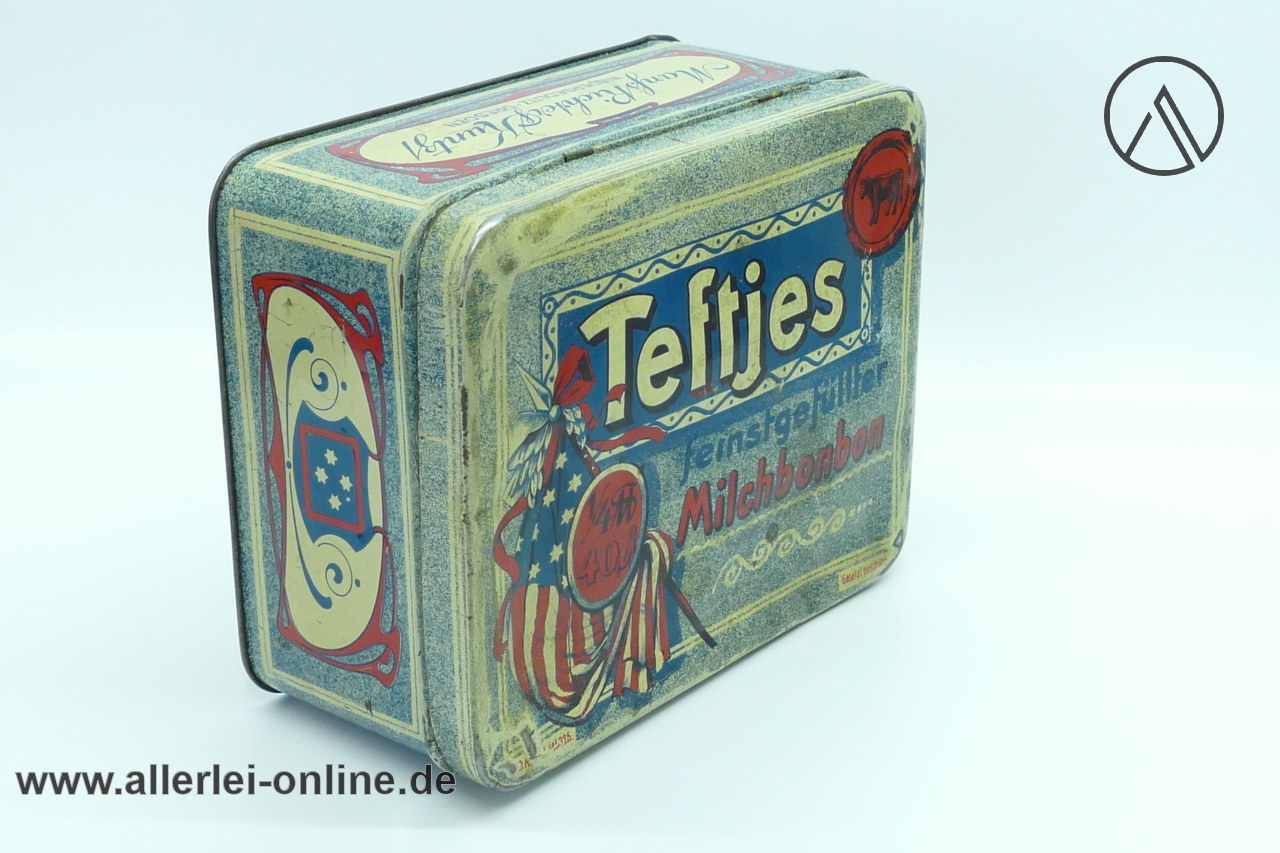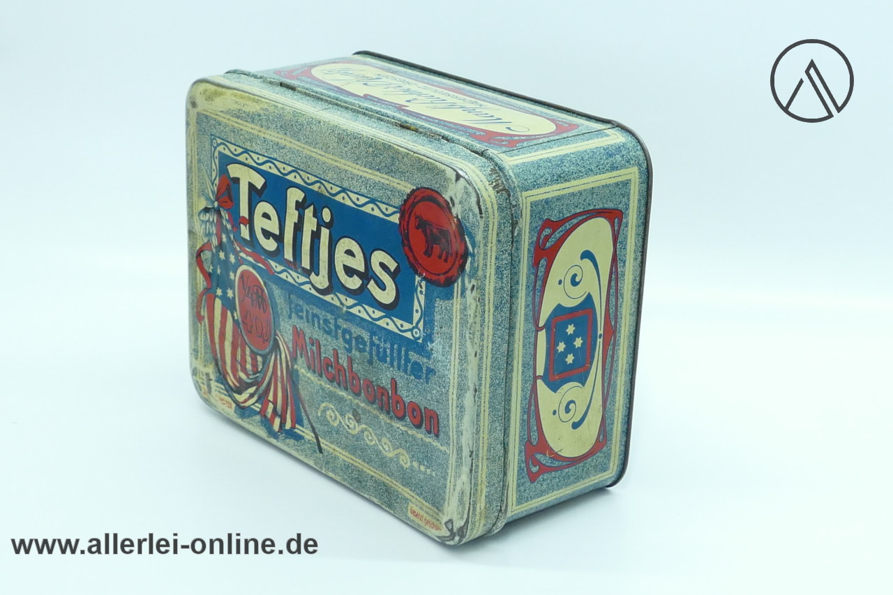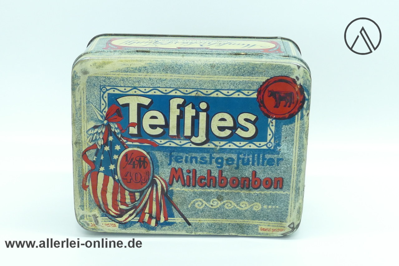 Lieferumfang: 1 Stück Teftjes Milchbonbon Dose / Blechdose | Manss Richter + Kuntz Niedersedlitz Dresden , wie abgebildet