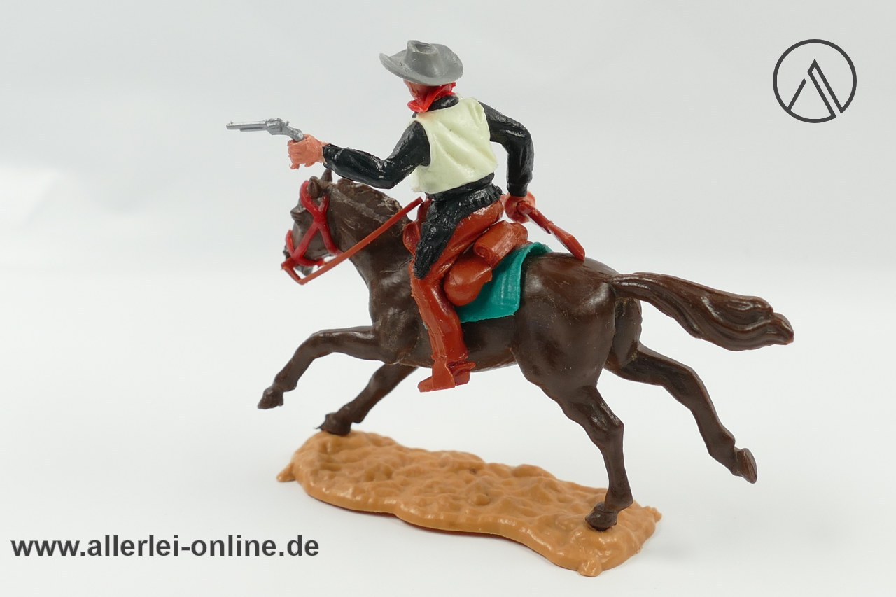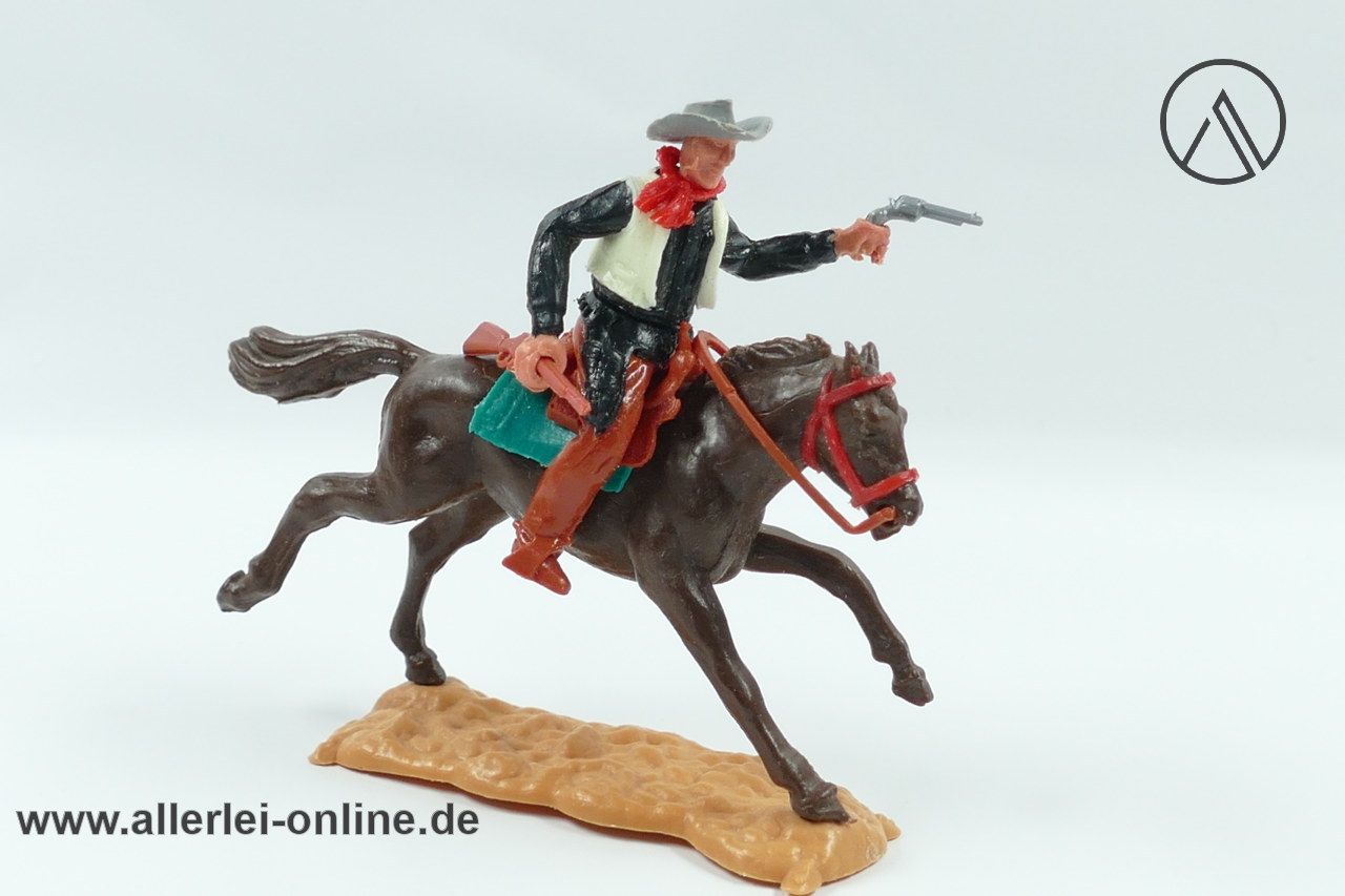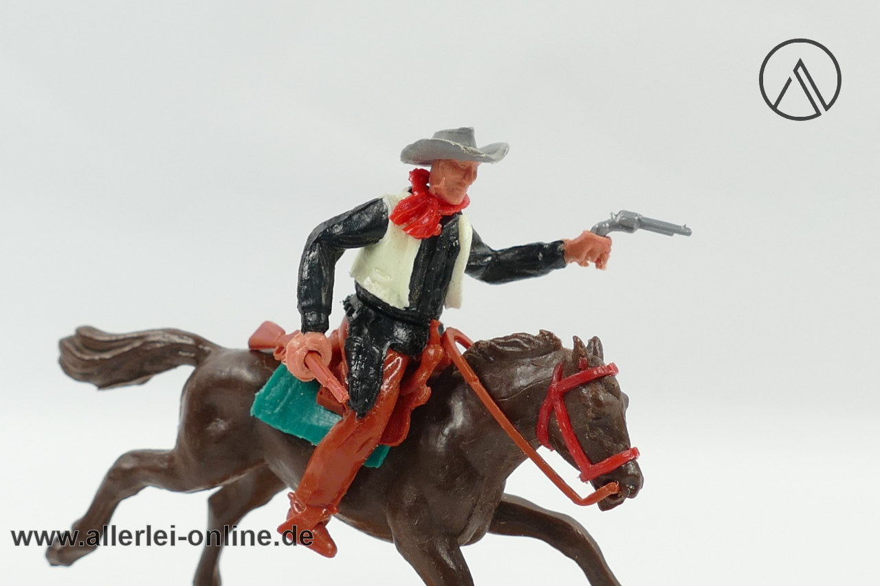 Timpo Toys | Cowboy zu Pferd mit Gewehr und Pistole | Vintage Timpo Toys Steckfigur  Cowboy zu Pferd mit Gewehr und Pistole