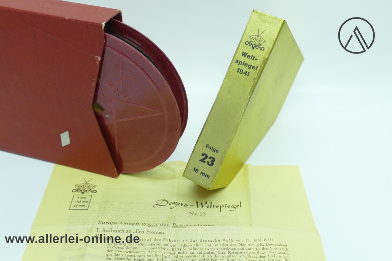 Lieferumfang: 1 Stück TOBIS-DEGETO 16 mm Propaganda Film | Weltspiegel 1941 Folge 23 | Europa kämpft gegen den Bolschewismus ,wie abgebildet / Selbstabholung ist natürlich auch gerne möglich