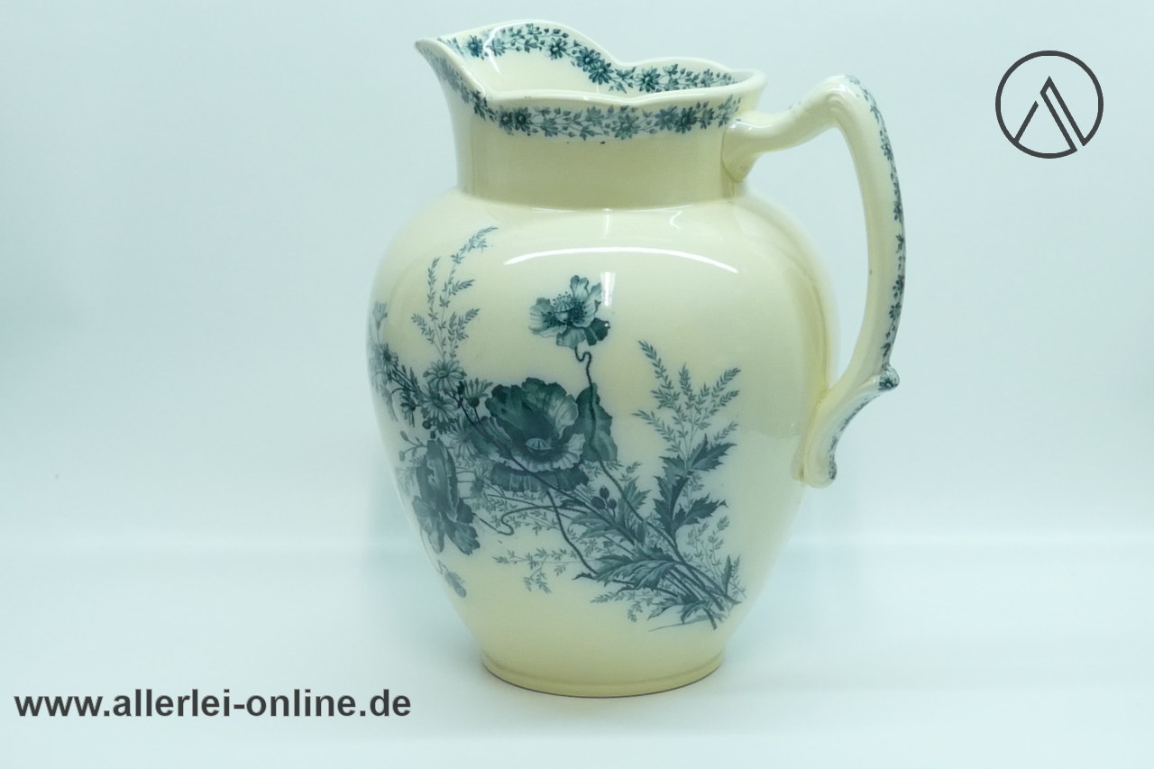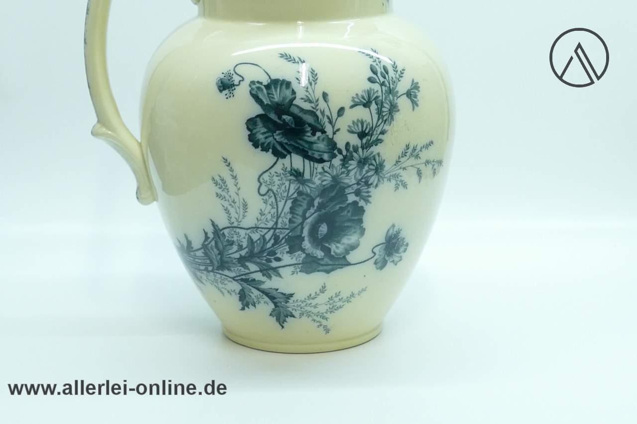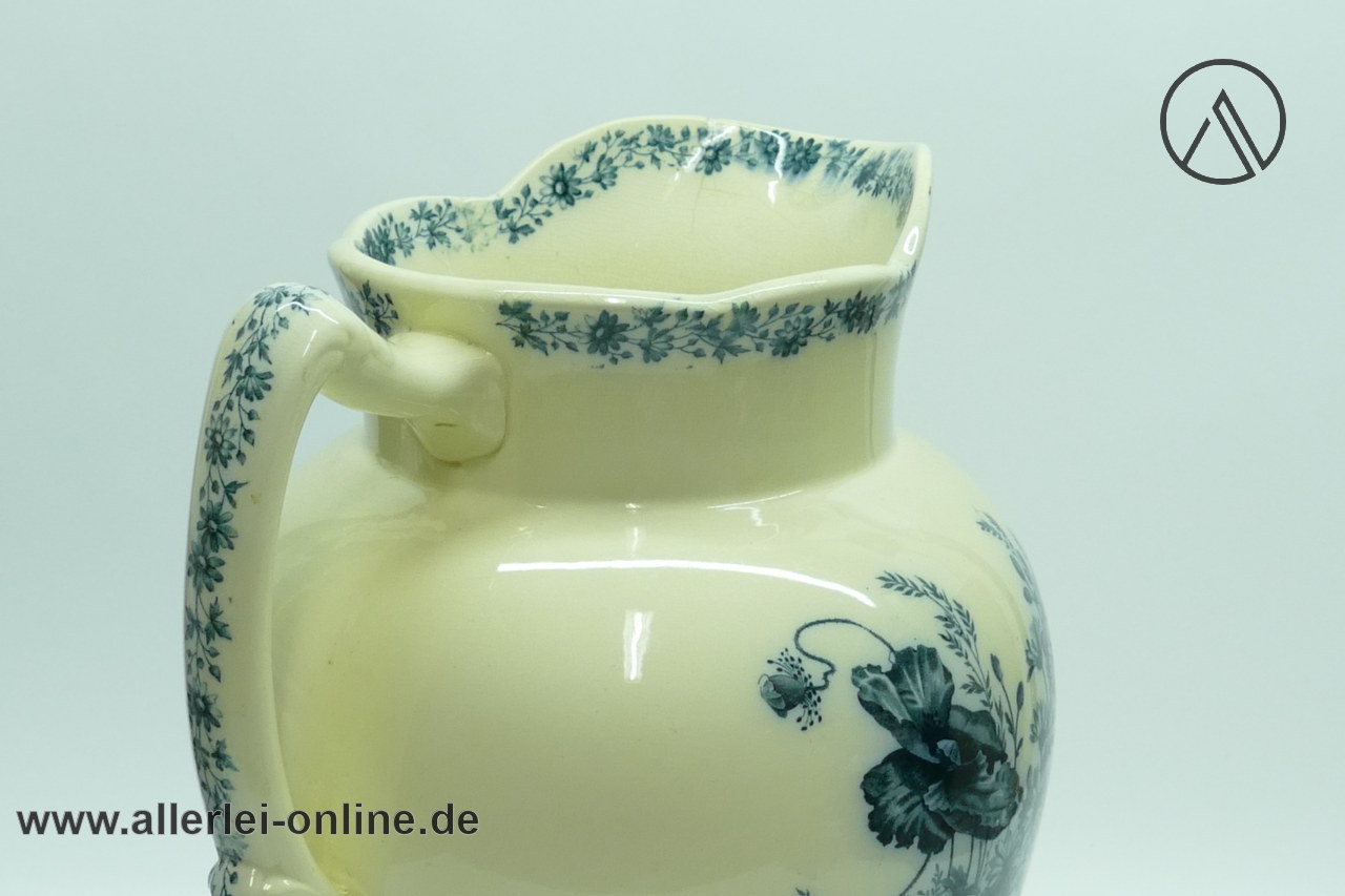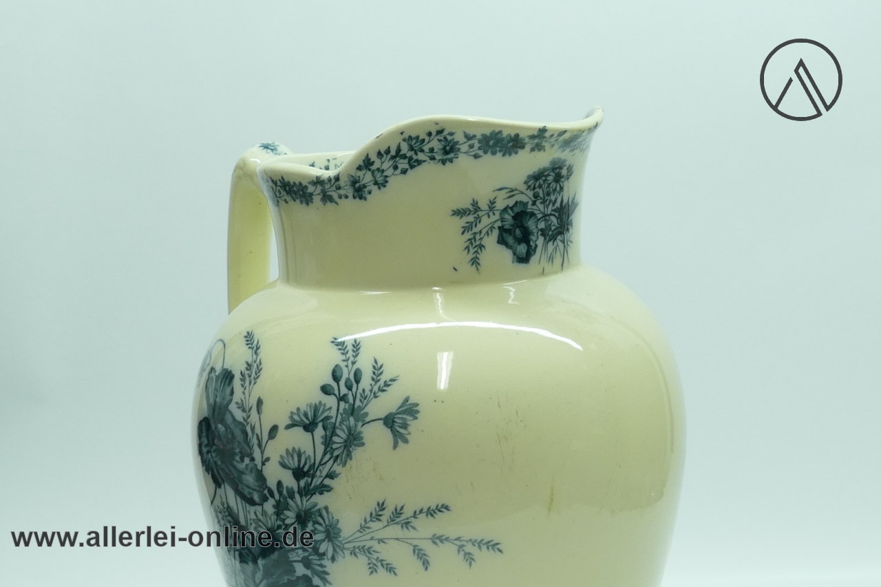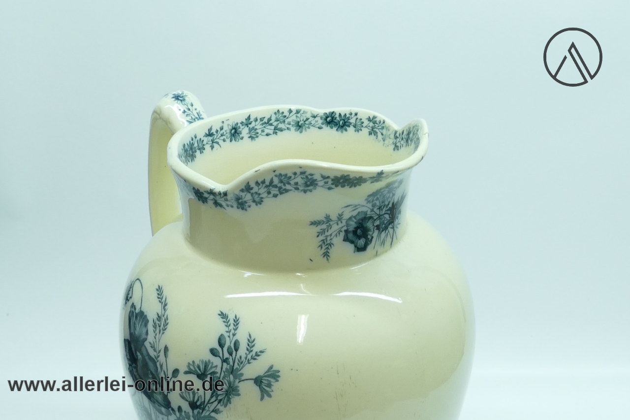 Artikel: Villeroy und Boch Mettlach Saar-Basin| Antiker Jugendstil Krug / Wasch-Kanne mit Klatschmohn, Margeriten, Gräser Dekor