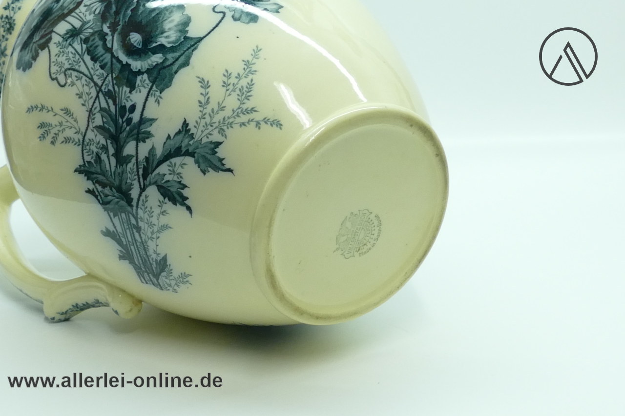 Lieferumfang: 1 Stück Villeroy und Boch Mettlach | Antiker Jugendstil Krug / Wasch-Kanne mit Klatschmohn, Margeriten, Gräser Dekor ,wie abgebildet