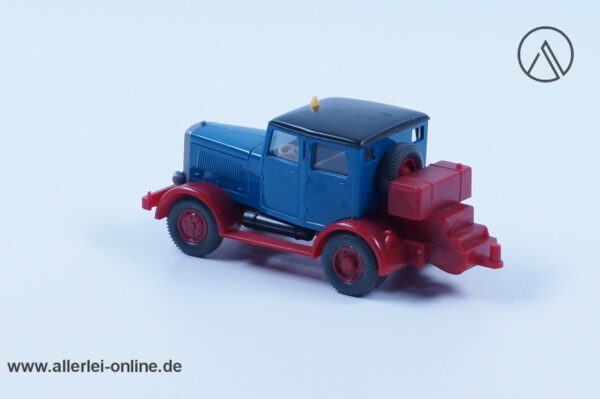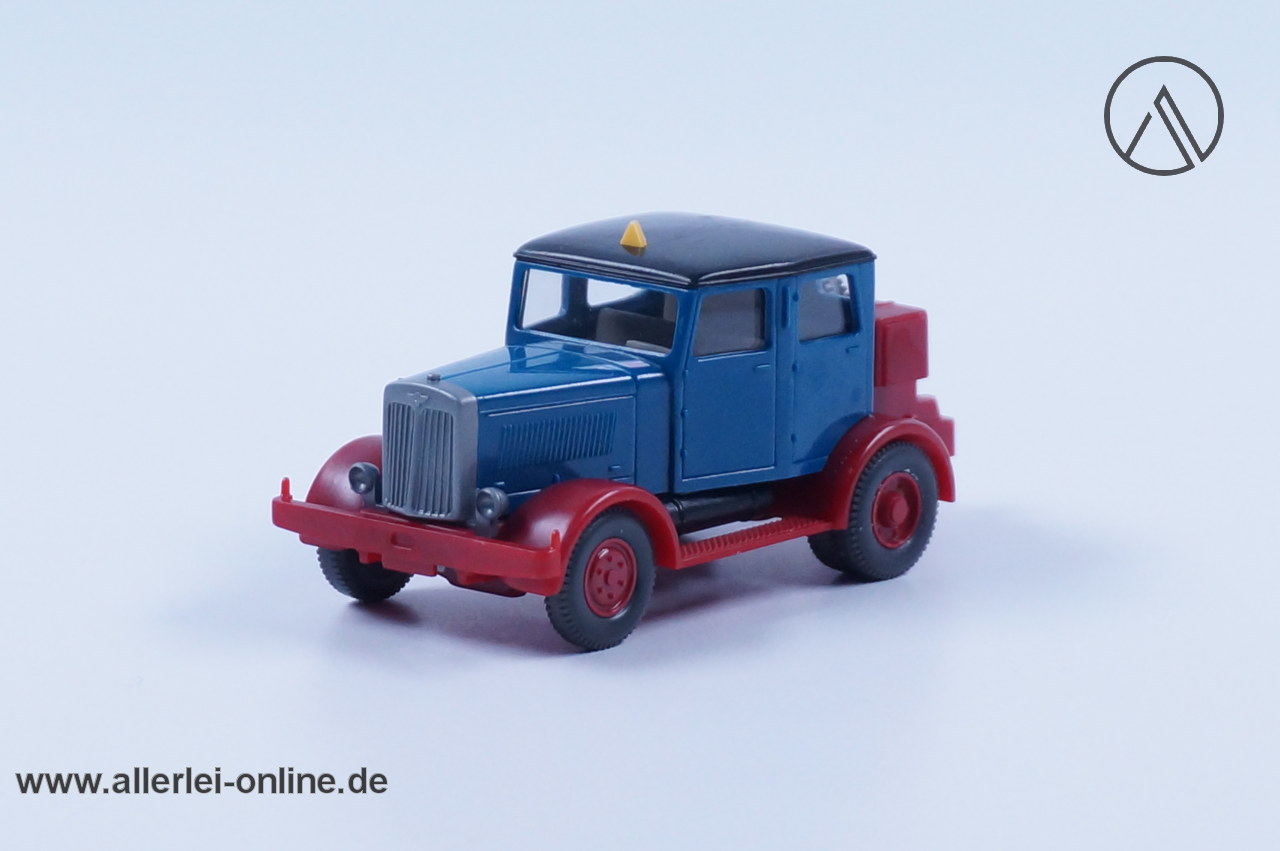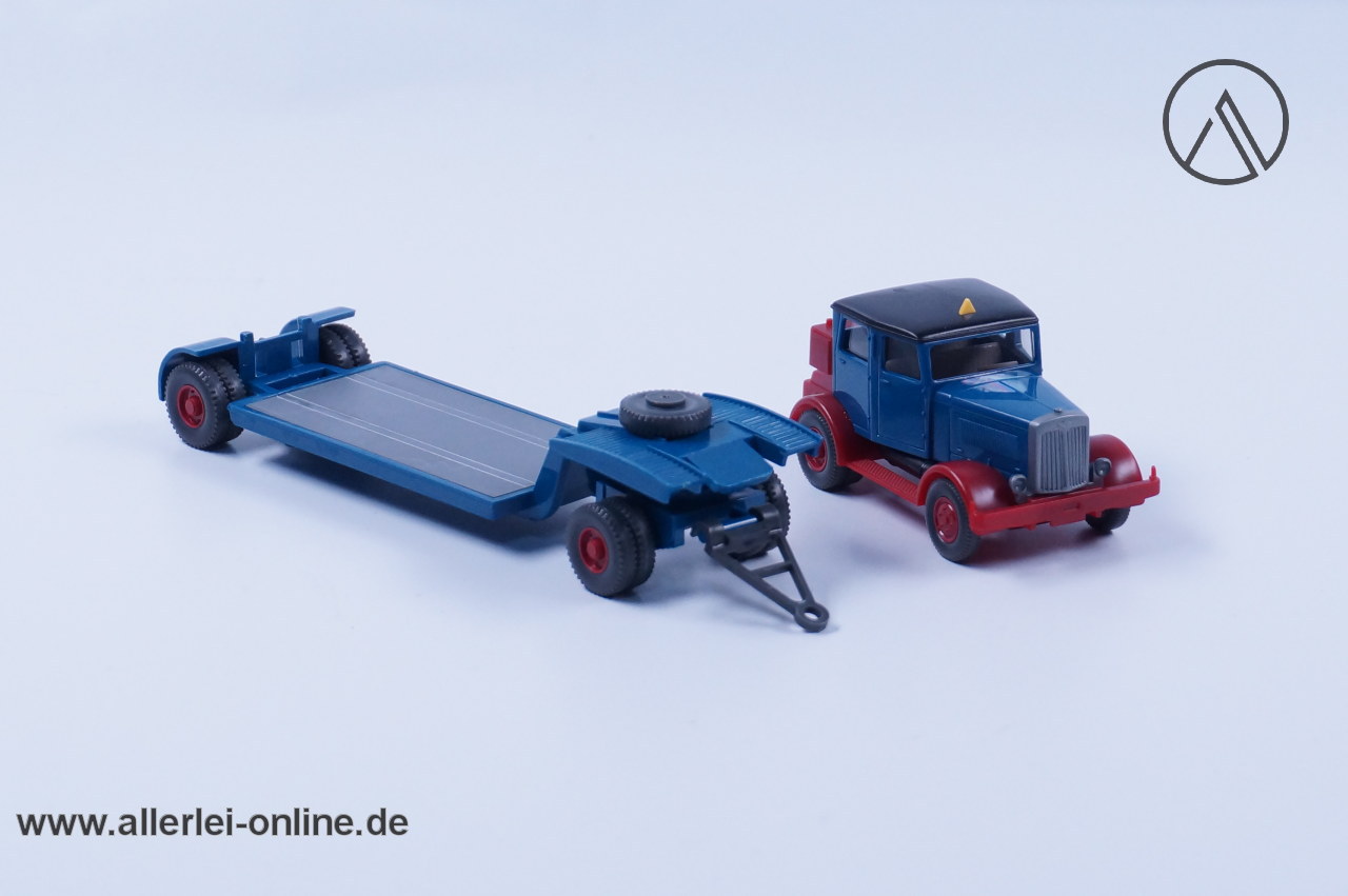 Vintage Wiking Modellauto | Hanomag ST 100 Tiefladezug | Veteran mit Tieflader | Blau | H0 - 1:87